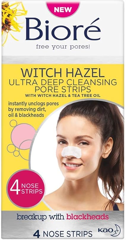 Bioré witch hazel pore strips vs charcoal. Wet the pore strip on the slick. Bioré witch hazel ultra cleansing pore strips 6 nose strips clears pores up to 2x more than original pore strips features c bond technology oil free non comedogenic use packaging may vary 4 5 out of 5 stars 6 371. Bioré ultra deep cleansing pore strips remove 2x more deep pore clogs than previous bioré ultra deep cleansing pore strips. Larger in size and formulated with witch hazel and tea tree oil this maximum power pore strip removes even more pore clogging dirt and oil.