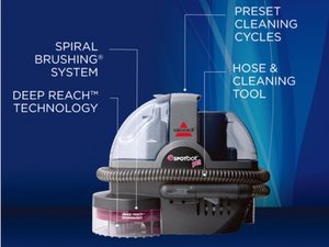 It s a powerful compact cleaning machine. Bissell portable carpet cleaning shampoo combines with strong spray and suction to clean carpet without blotting or scrubbing and makes for an excellent spot cleaner.